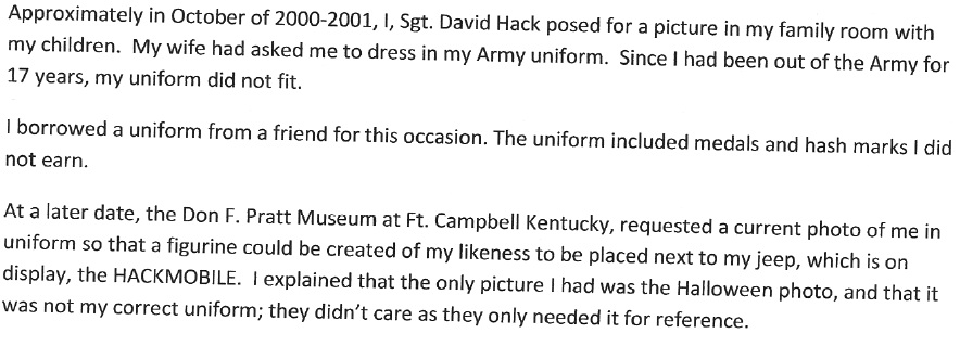 Ok, this is an old story, but it comes to life like the serial killer who won’t die, because someone sent a .pdf file to Mary to “prove” that Hack isn’t lying, and it really doesn’t prove anything. They have useless medical records written by people who spell Eglin AFB “Eagland” which somehow proves a Purple Heart, but I’m pretty sure that no one has qualified for a Purple Heart near Eglin since Andrew Jackson was a general. And I’m pretty sure that everyone, even doctors, know it’s Eglin.