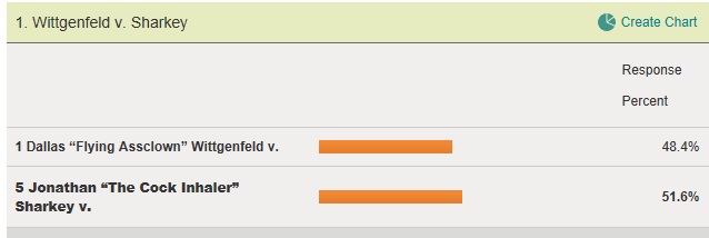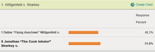 Sharkey def. Wittgenfeld (thank you Jesus) 51.7 – 48.3