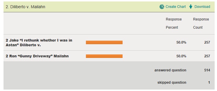 This was tough for me, I voted for the Mailman but I may split my vote moving forward to keep the greasy, smiling con man where he belongs under a bright, shiny spotlight of truth.
