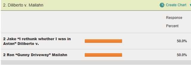 Thinking about it some more I can see that Diliberto is more like Bernie Madoff in that his lies are a grand scheme to defraud on a scale unimaginable by the likes of the dimwitted Ronad. That seems far more insidious and despicable to me at this point and means I have to change to Diliberto for the rest of the week…