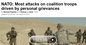 CNN is full of it. The attacks by Afghan troops on our soldiers are NOT based on personal grievances. Look on youtube… look at the Taliban celebrating when one of their buddies return from carrying out a mission to infiltrate the Afghan troops and kill NATO soldiers. These attacks are absolutely calculated and should be considered terrorist/enemy operations. It is a damn shame that people can’t report the truth for fear of losing relations with a country that American taxpayers pump money into for no reason. We are basically paying them to kill us at this point.