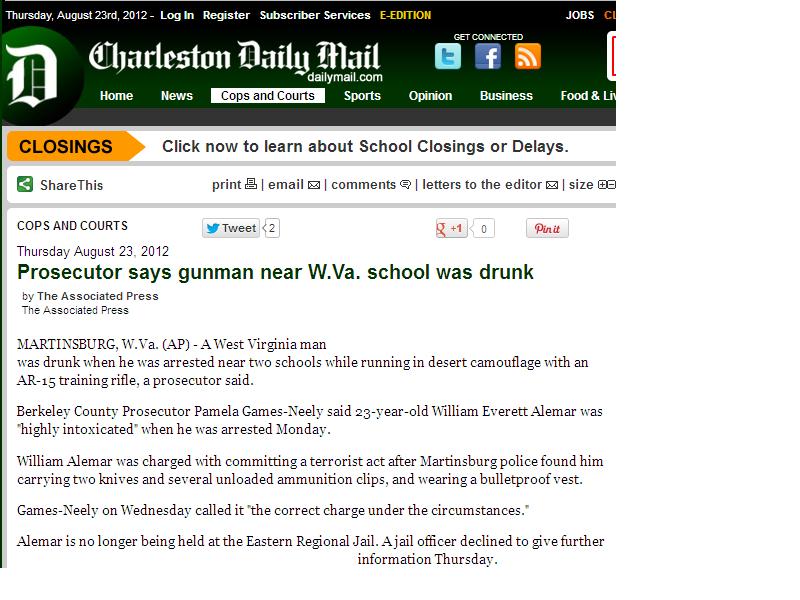 http://www.washingtonpost.com/national/prosecutor-man-with-military-gear-near-wva-school-was-highly-intoxicated/2012/08/23/43fe7d4c-ed0a-11e1-866f-60a00f604425_story.html