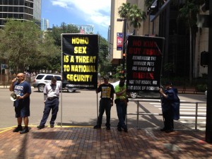 I liked the sign in picture number 2: “Homo sex is a threat to national security”. Only if you’re afraid of being found out.