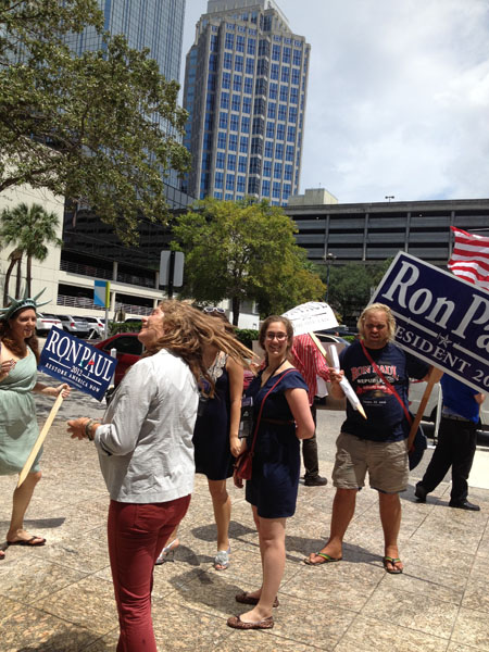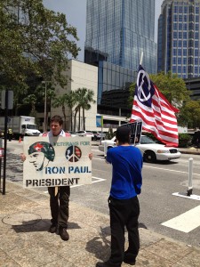I remember when I went to this site proclaiming the brutality of the police against the Occupy Wall Street People I went there hoping for some dogs and fire hoses…shit no all I saw was very well behaved police. They were doing everything they could to not hurt protestors even though the protestors were doing everything in their power to get hurt. Here we just have a random crazy yelling on the street corner, no crazy dancing vaginas, no chemtrail crazies, although I would have loved to see the conversation between the “vet” for Ron Paul and Strike FO. That would have been funny…