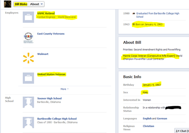 As you can see this “decorated veteran” has a good command of English. Note he never once speaks to the issue that two USG agencies has confirmed he NEVER served a day in any of the Armed Forces. I suggest that may need some attention on his Facebook page https://www.facebook.com/bill.blake.3762 where he STILL claims to be a veteran.