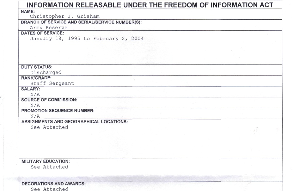 Best part is how Yon gets the vapors over “Is he a Master SGT or a 1st SGT?? Grisham lies!” And yet Yon’s copy of CJ’s records end at CJ being a SSGT. Wonder how he’s going to justify his own inconsistency on that one.