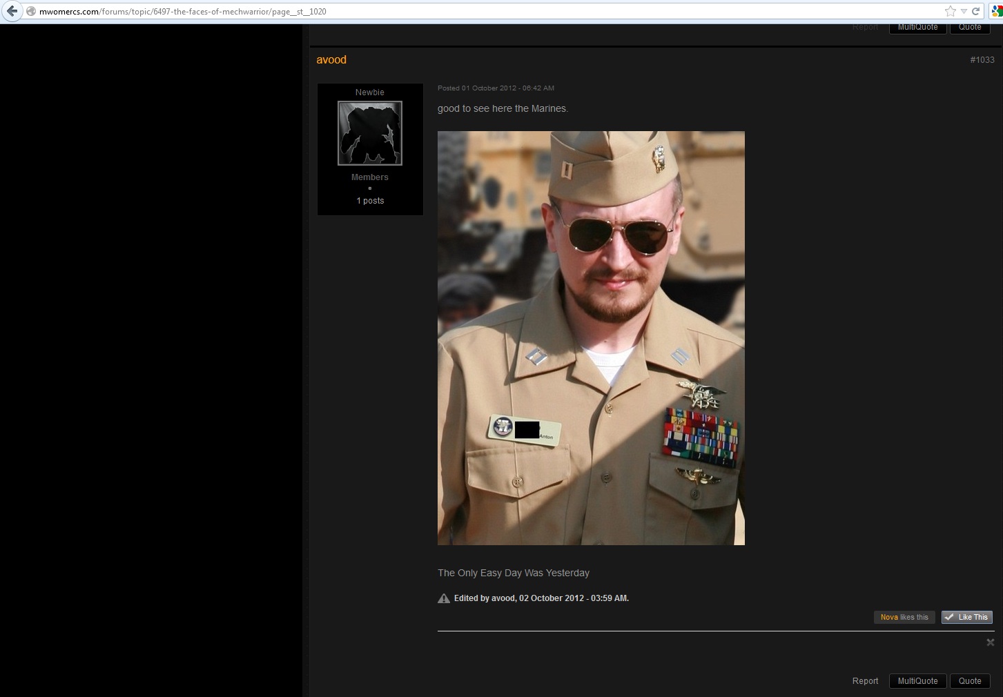 Now, I don’t know a Marine uniform from a Navy uniform, but I do know that, with the Saudi Defense and Kuwaiti Liberation Medals, there should be a star or three on that SWAT medal. I’m pretty sure that the Navy Sea Service Deployment Ribbon doesn’t rank higher than a Bronze Star Medal. But you guys go ahead. And, oh, if you know where he is, we’d like to know, too. The only thing visible on that crooked-ass name plate is “Anton”