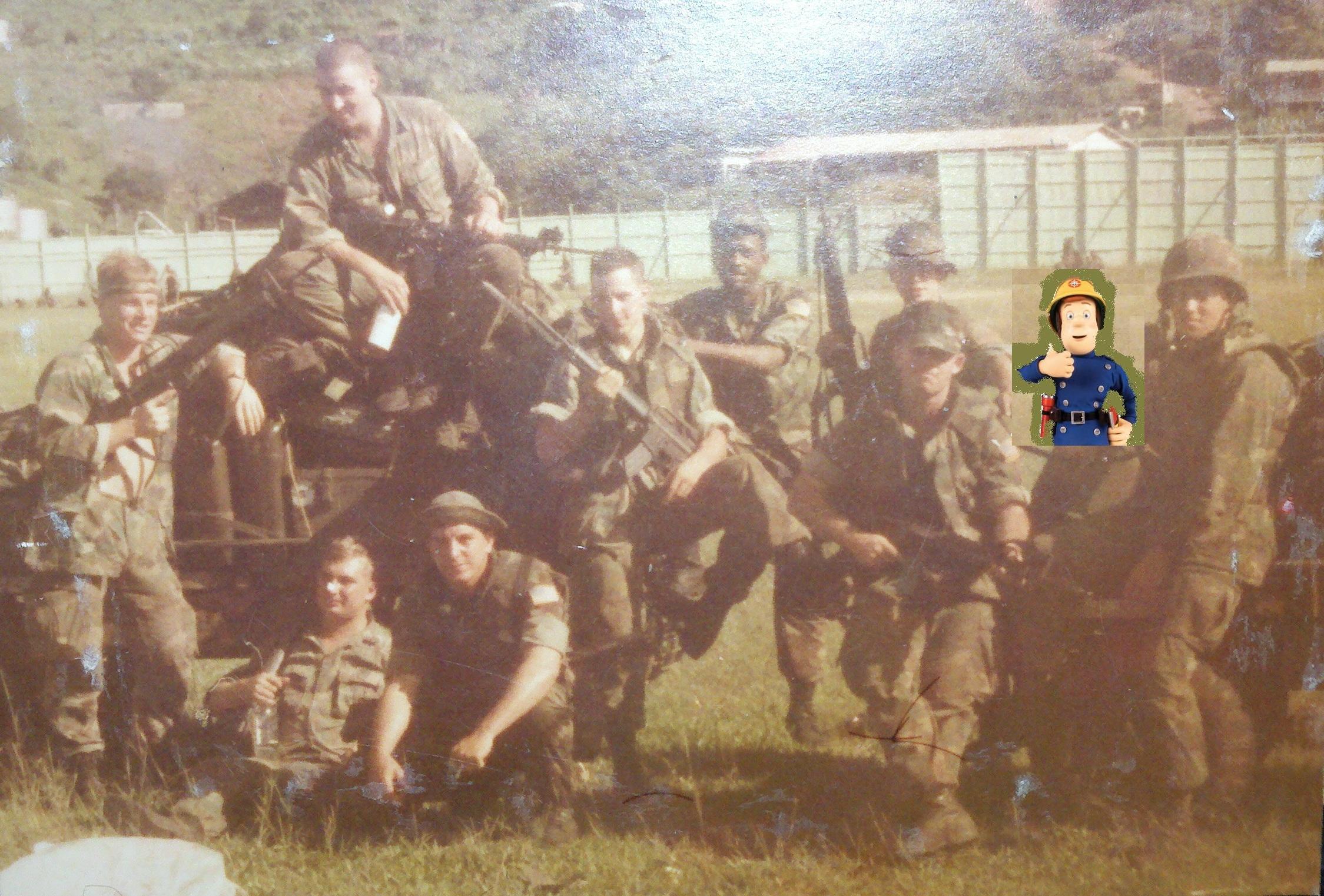 There has been some measure of discussion on the post about fake Marine William Blake (aka Zippy the Pinhead) who claims he was in the Marine engineer unit that deployed from the war in Grenada to the rubble of the Marine barracks in Beirut in 1983. Realdealengineer sends this picture of him and his unit in Grenada who actually did do that mission;