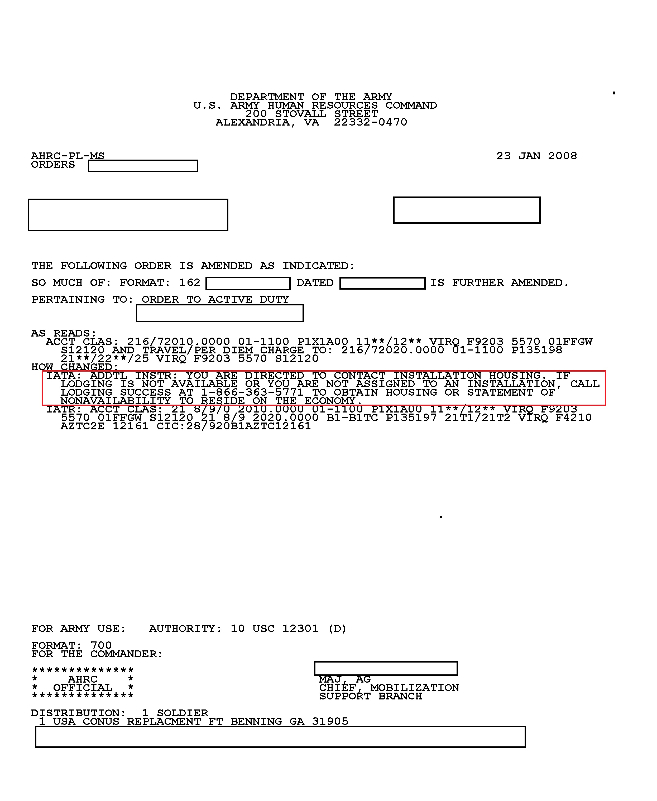 Well, in January 2008 I got the following amendment to the orders recalling me to active duty and sending me to the sandbox. It was sent to me at my home of record; my spouse forwarded me a copy.