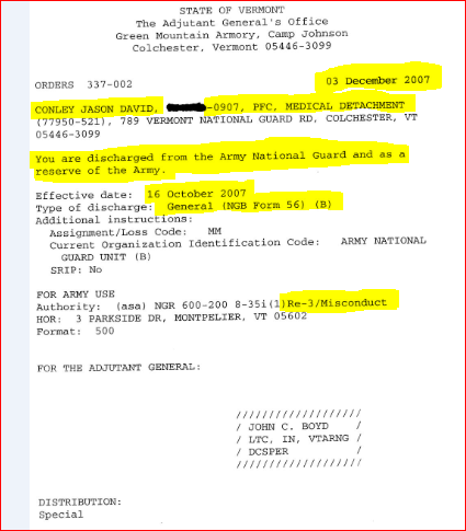 Yeah, there was discipline problems, too, which caused him to get kicked out of the Vermont National Guard. Stuff like drugs and not showing up for drill and missing the make up day for drill. He lasted less than a year in the VTNG;