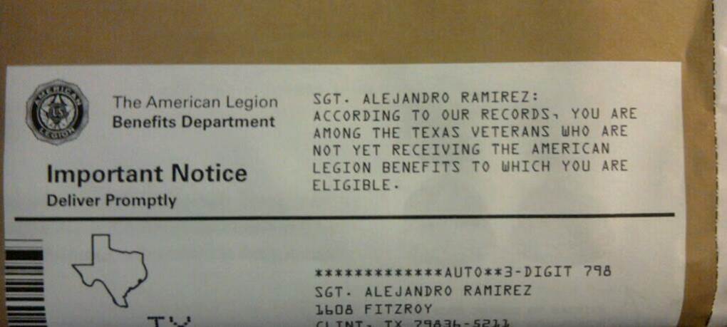 Here he proves his service with the heading from a letter from the American Legion;
