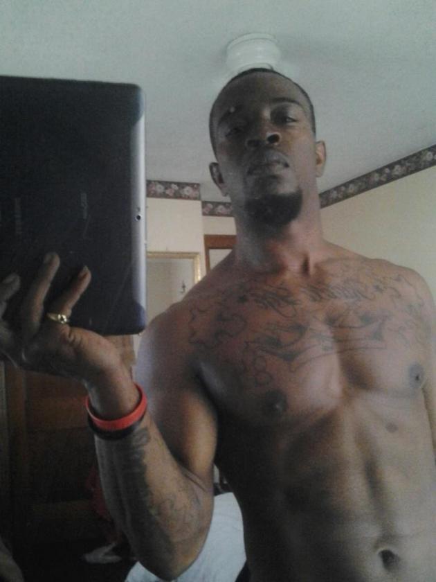 Notice the coke fingernail. Classy. Gigantic Latin King’s crown on his chest as well.