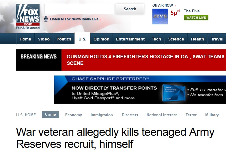 But the implication is that his murder/suicide thing is somehow related to his wartime service. But, no, he was a borderline pedophile who preyed on high school girls and his leadership at his recruting station missed it somehow, even though he was married to one of the ladies he recruited a few years back.
