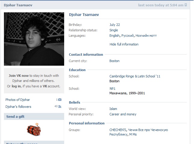 Not that a foreign gummint asked the US to check out the older brother back in 2010 and got a clean bill, obviously, and then went on to travel freely back to Russia and probably down to Chechnya for some good ‘ol jihadi training.