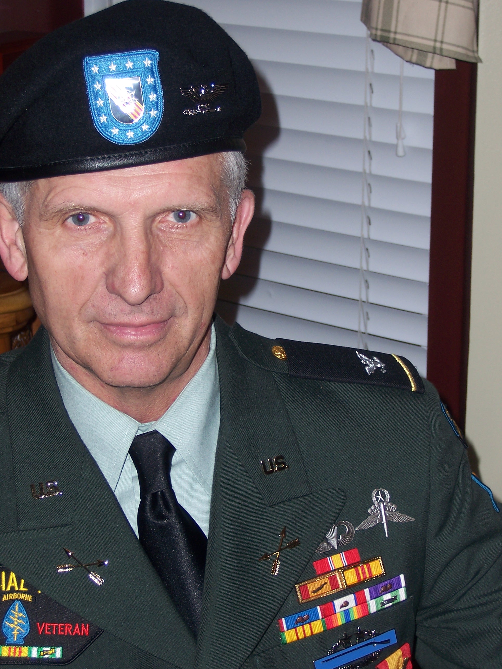 Never saw a National Defense ribbon above what looks like 3 or 4 Purple Hearts. Foreign awards above American. LMAO what a dip. They are partly together, partly 1/8th spaced and a Vietnam Vets t-shirt or jacket patch sewn above his right blouse pocket. Ribbons with medals. And get a load of where is CIB is planted! Some kind of stuff on his beret and a Colonel no less! It just doesn’t end. Thanks for outing him TAH. (Note to posers. If you are going to pose at least Google AR 670-1 so you not a complete ass hat.