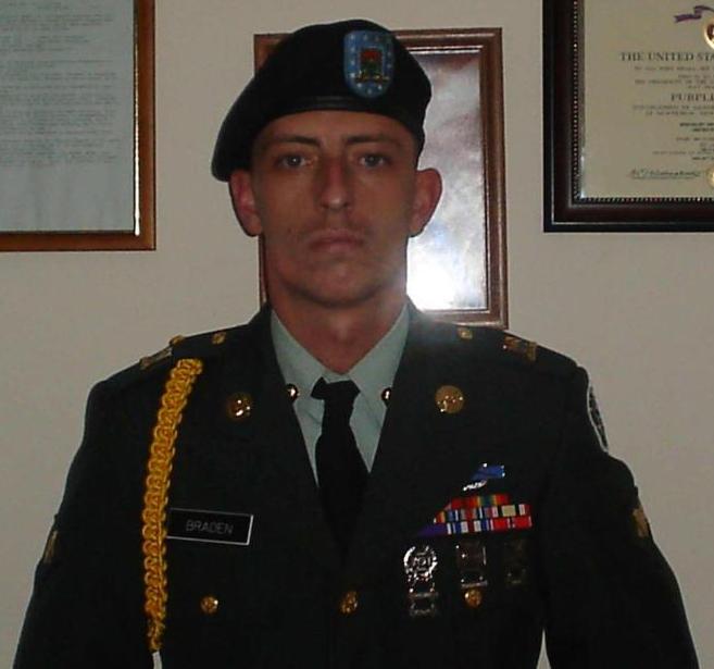 Braden did in fact deploy to Iraq. He did see action and receive a CAB. Braden was combat wounded and received the Purple Heart. He did receive a personal decoration (an ARCOM), presumably as an EOT award for his tour in Iraq – along with the NDSM, the GWOTEM, the GWOTSM, the AFRM w/”M”-device, and the ASR.