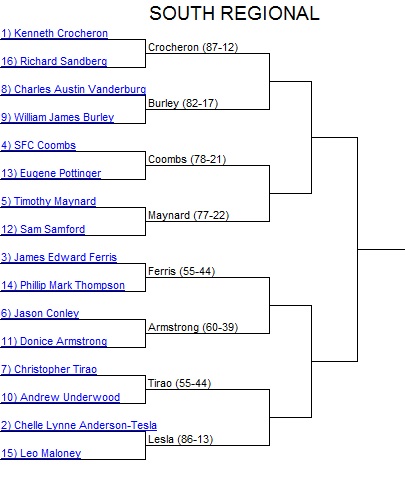 I see that we are well on our way to an epochal third round “female faker” showdown between amy the hooker and spankarella in the South Regional. Due to popular demand, though, I think spankarella will take that one to move into the regional championship against kendude crotchrot…
