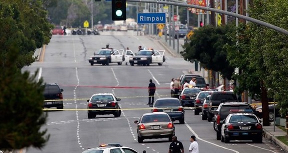 The response to Tuesday morning’s shooting was swift. A tactical alert was issued and a 25-block area in Mid-City was shut down. Some 200 officers cordoned off the area between Washington and Pico boulevards and Redondo and Rimpau boulevards as the search continued.