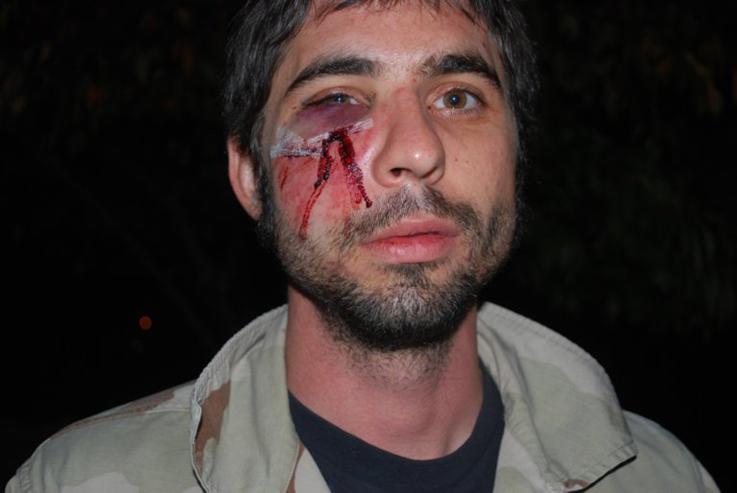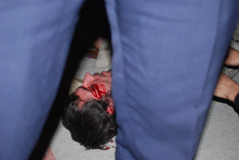 Outside the Obama-McCain debate, at least 15 people were arrested at a protest organized by Iraq Veterans Against the War. IVAW member Nick Morgan was left bloodied and nearly unconscious after being trampled by a police officer on horseback.