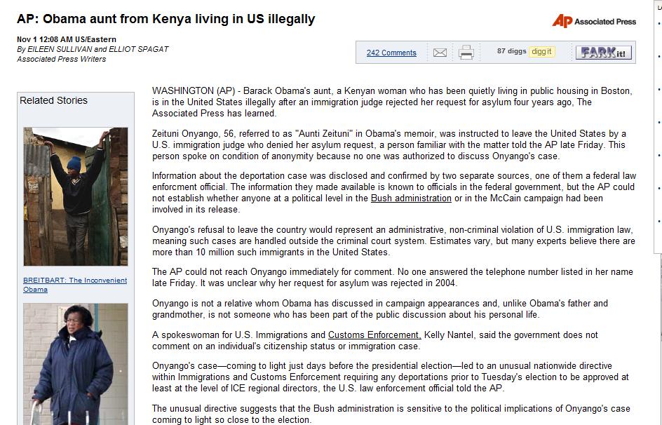 So AP is reporting that Obama’s aunt found in Boston was ordered to leave the country after a judge denied her amnesty request;