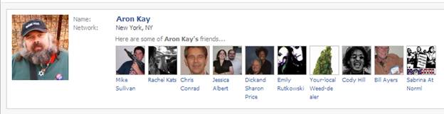 Now, this picture has been up there since October 20. That is 3 days shy of a month ago. It was posted by one of their supporters, Aron Kay. Look at his picture, and note who the second from the right friend of his is. (If youcan’t make it out, he’s at least “facebook friends” with Bill Ayers.)