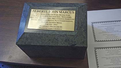 At this time, all postings and pictures regarding Alberti have been removed from the websites and Facebook pages over which we have control. We at Auburn Post 78 are extremely distressed that we may have played a role in interring a “fake warrior” in our National cemetery; however the last we heard, the folks at TNC say he is an eligible Navy veteran (disclaimer: being eligible to be buried in the National Cemetery does not in any way imply that the service/training/awards listed on the DD214 are correct).