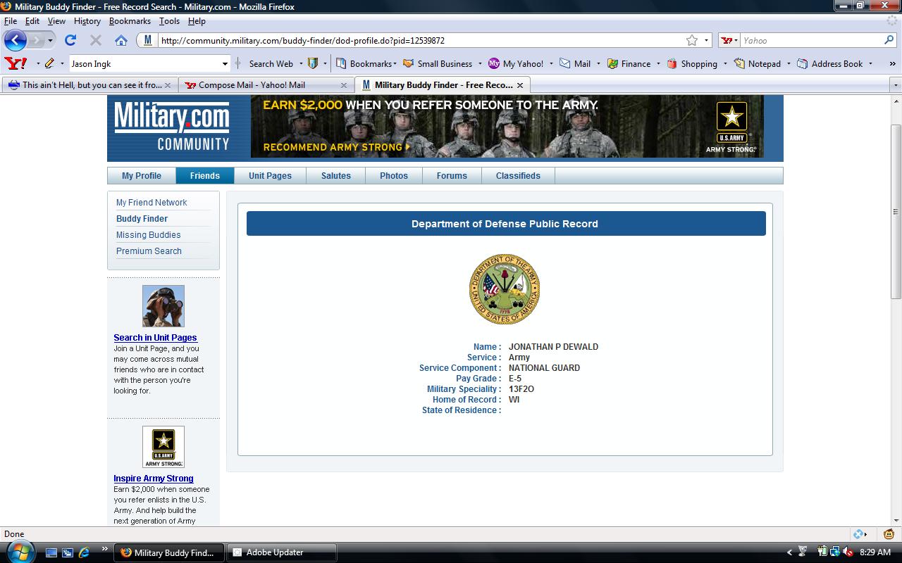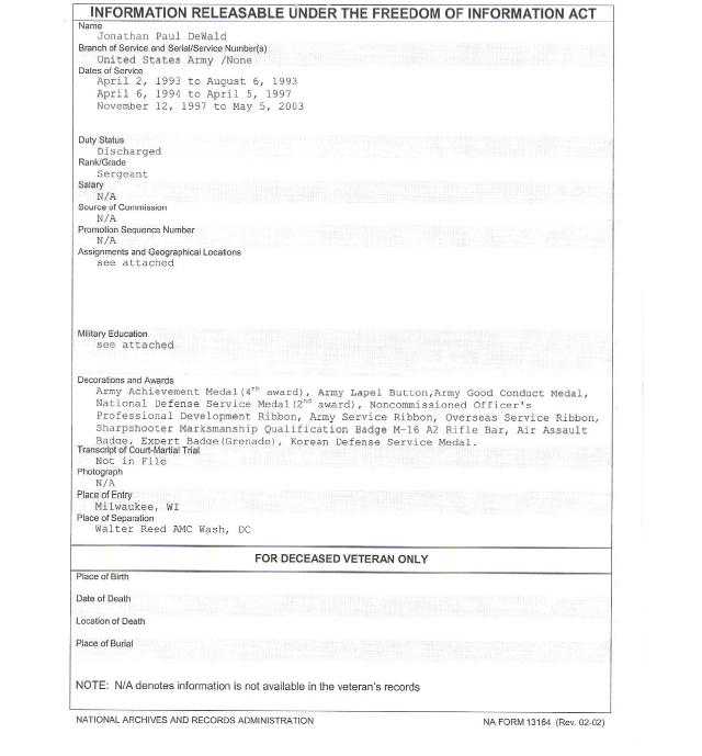 Here’s John Phillip DeWald’s Facebook page where he lists his assignment to the 41st Field Artillery Brigade in Babenhausen, Germany. Notice the Facebook page and the FOIA request list the same date of birth. Also notice on Jon Phillip DeWald’s Facebook page that he claims two months service in the French Foreign Legion – Ha!