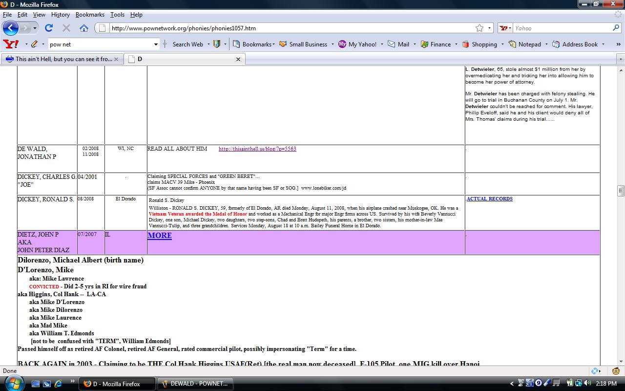 The evidence has proved good enough for POW NET to add DeWald to their list of phonies;