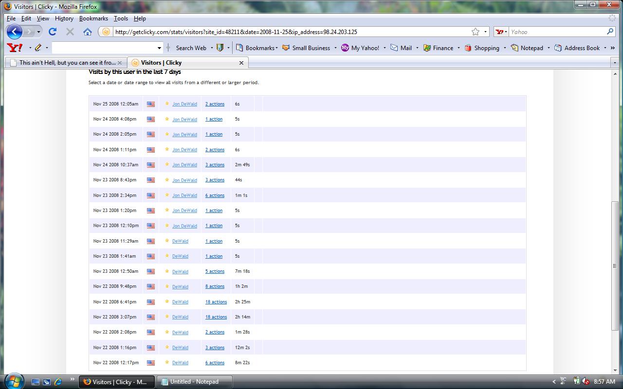 As far as the lawsuit goes, he can’t sue me for posting publicly available material on the internet. Stand outside my house and shout at me, this post is just a sample of what I’ve assembled. Piss me off, keep threatening my friends, threaten me, I’ll post the rest of it. So far, any prospective employer that does a Google search and lands at this blog (it’s tenth in the search results of “Jon DeWald”) will seriously reconsider any thought of hiring DeWald.