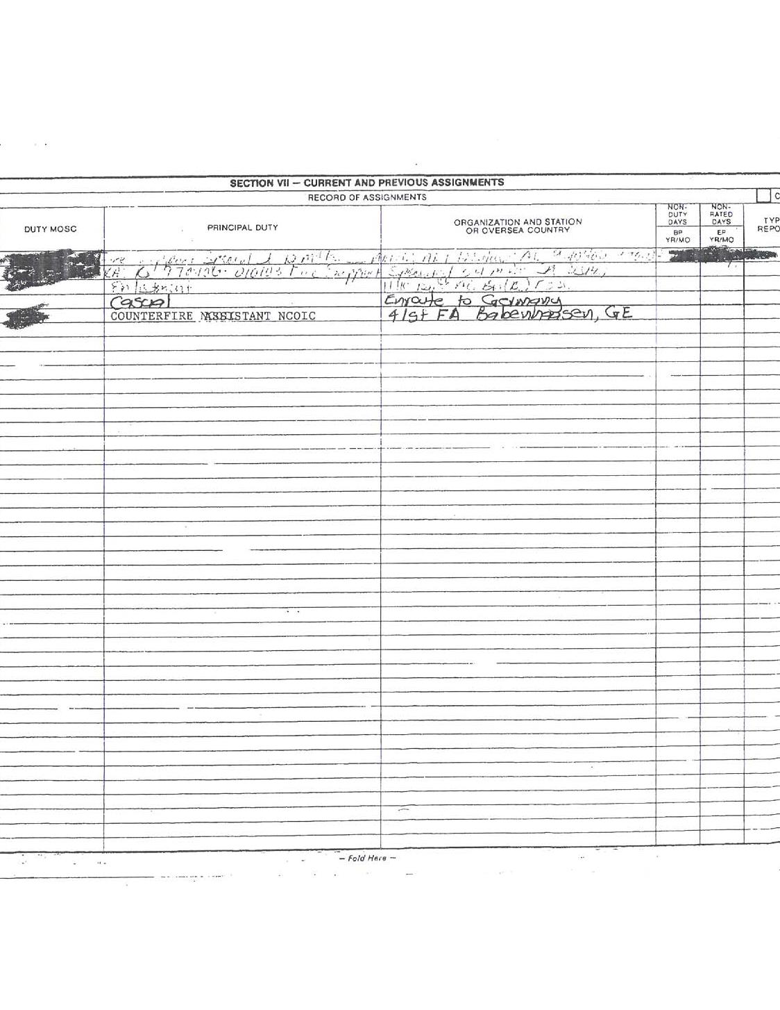 UPDATE: Here’s Jon Paul Dewald’s DA Form 2 recording his assignment to the 41st Field Artillery Brigade in Babenhausen, Germany.