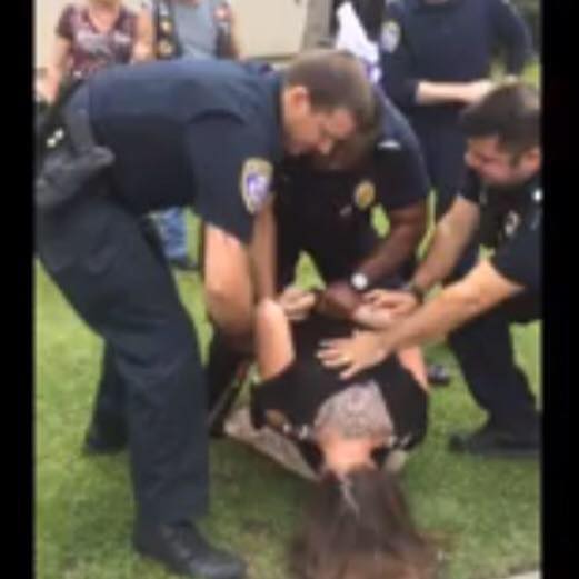 While her actions may not have been well thought out, and may not have been the way I would have handled the situation, I must applaud her for displaying an adult version of civil disobedience that is rarely seen these days. She did not really fight with the officers She simply refused to back down. At no time did she actually pose a threat to anyone, whiles others were definitely causing problems for the officers who were forced to push them back.