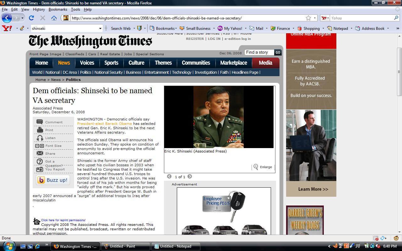 The King of the Black Beret, Eric Shinseki is rumored to be the next VA Secretary by Associated Press;