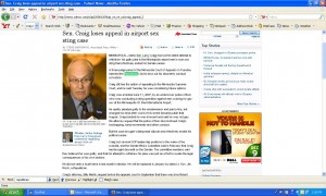 As compared to today’s Larry Craig story – second sentence and in the caption of the picture;