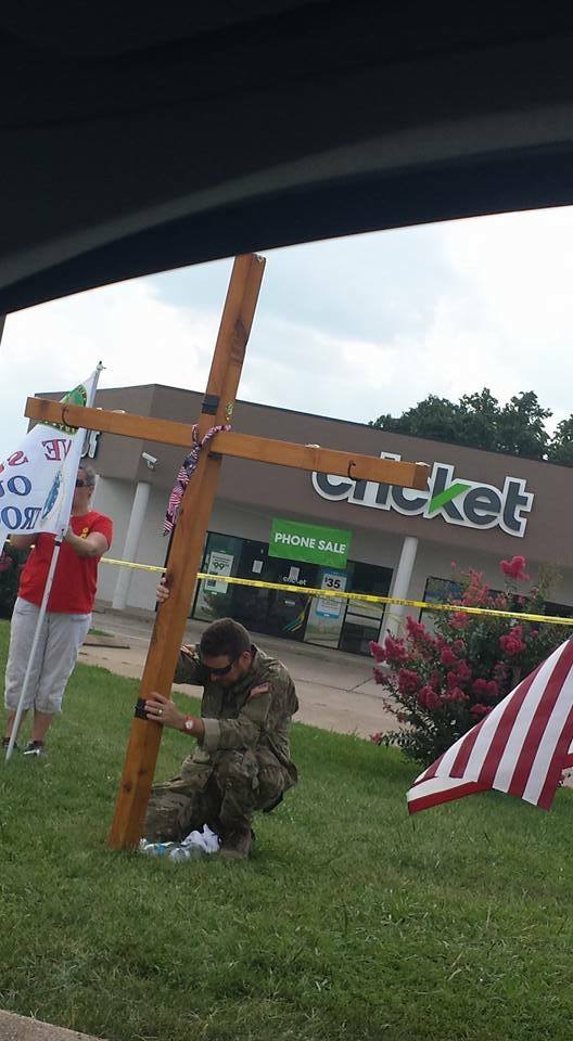 “Someone sent us these pictures from their cell phone last night….” Not exactly a crowd around him. I could get behind the point if the pic was taken by local news and splashed all over the place or was posted to FB by the guy himself but it appears that but for the cellphone pic and its publication here, no one but a few people would have seen this guy. It could well be that the guy, whether anyone agrees with him or not, was sincere, built the cross himself, on his own time, with his own dime, and put it up without fanfare. If there is more, other than the pic, please share it.