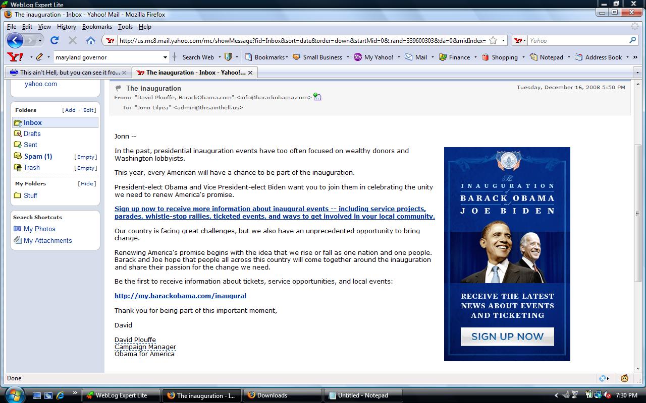 You can be wearing all of the Obama hats, the Obama jackets, the Obama earmuffs that you want, you’re still going to be walking miles from the nearest Metro station they leave open and stand in the throngs waiting to get through the metal detectors, dogs and bag-searches on street corners so you can stand behind a mile-long line of cops in the freezing-ass cold just like the rest of us. Oh, and then Obama will whip by us all at about 30 miles an hour on Pennsylvania Avenue – and you’ll be wondering “I went through all of that for this?” – just like the rest of us. And he’ll be followed by a line of limousines carrying the Washington lobbyists and wealthy donors on their way to the White House.