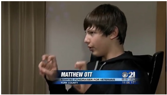 You might remember Matt Ott, the teenager who used to raise money for veterans in order to memorialize his late mother. His mother passed away soon after he was born, while she was a soldier. He came to our attention more than two years ago when he was fooled into giving money to Nate Fornwalt. Matt thought that Fornwalt was a wounded veteran, but he wasn’t. So TAH came together an replaced the money since Fornwalt wouldn’t take his grubby paws off of it and give it back. Matt also became the face of Stolen Valor in the halls of the Pennsylvania legislature last year as he worked shook hands and kissed babies to get a stolen valor bill passed there.