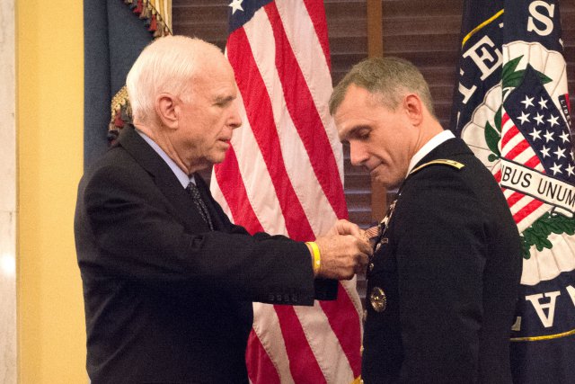 Chief Tango sends us a link to the story of Lieutenant Colonel David P. Diamond ho was awarded the Soldiers Medal by Senator John McCain on Capitol Hill last month for his actions at the Boston Marathon on April 15, 2013, when two terrorists detonated a bomb at the finish line of the race.