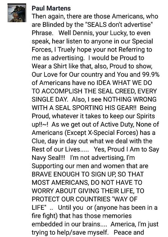 Wowsers. There are two retired Navy SEALS named Paul Martens that graduated Hastings High School (MI) 1986 living in Lansing Michigan.
