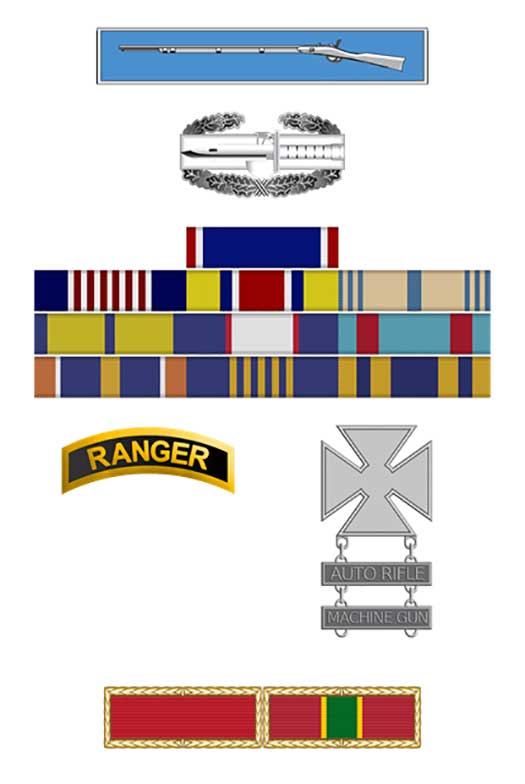 he made more than one contradictory statement. he has affirmatively claimed: 1. tab,2. scroll,3. EIB, 4. airborne school,5. disqualification as a member of the 75th, and reassignment to leg infantry due to permanent injury from a jump. –