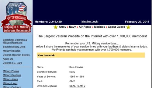 Jozwiak exhibited a military discharge certificate in 2014 that claimed, in part, that he was a highly decorated Vietnam War veteran, that he was a four-time recipient of the Purple Heart, and that he was a Navy SEAL — all entries Jozwiak knew were totally false, according to court documents.