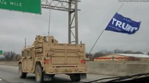 I agree with all the comments regarding the inappropriateness of flying the Trump flag on a military vehicle. But I also find it funny as hell. Had I passed that particular vehicle, I believe I would had honked and given them a thumbs up.
