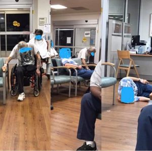 I went to a standard civilian ER in JAN and saw similar there. People were sleeping in whatever position they could, and generally had more miserable looks on their faces than I had.