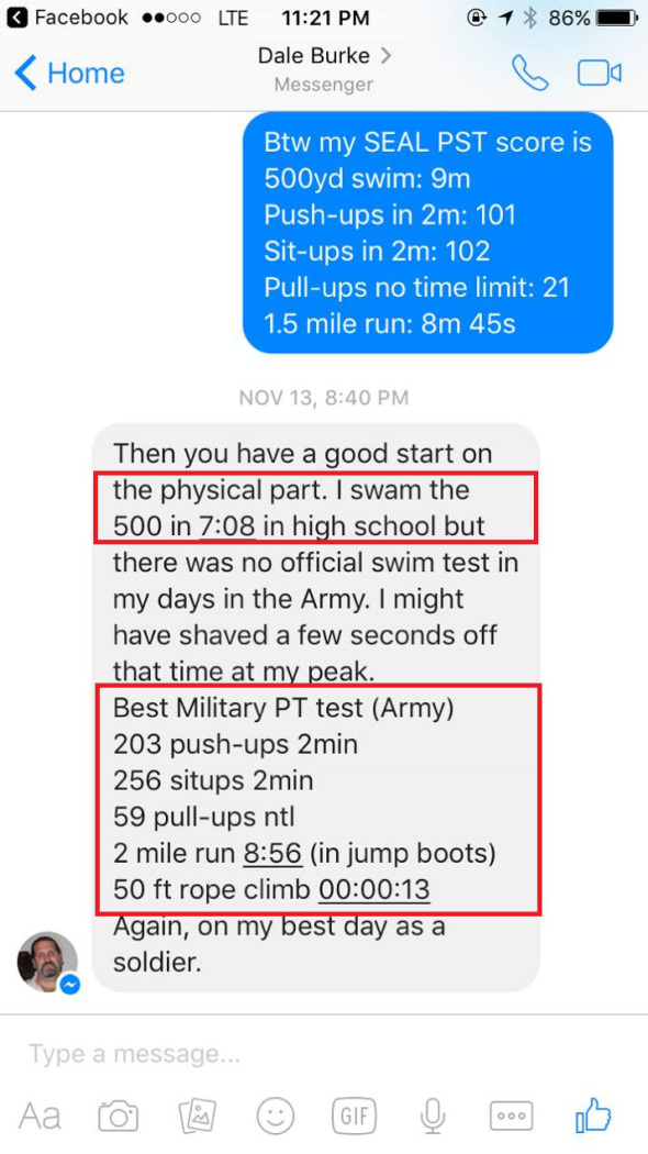 Around Thompson, North Dakota they have a program where young men who aspire to become Navy SEALs can test their grit. For some reason Dale Burke took it upon himself to get involved because of his Army Ranger training. His physical abilities are really remarkable…according to him anyway.