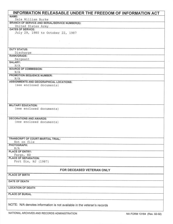 We understand there were issues of inappropriate conduct involved with this. However, we still need to deal with any confusion that Mr. Burke was ever an Army Ranger. He was clearly not. It appears to us that none of this would have happened in the first place had Mr. Burke not embellished his military service. We hope this puts and end to any mystery concerning Dale Burke’s military career and an end to inappropriate conduct by this young man.