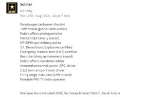 Bullshit- are you trying to say that this ISN’T from your LinkedIn page: Soldier