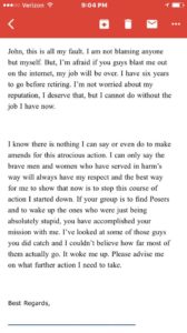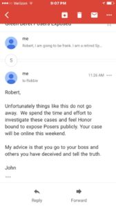 We attempted to call Robbie, but could not make call Robbie several times with no luck. So we sent him an email to his work email address laying it all out for him. The next morning, an answer arrived. Robbie admitted everything. Here is an excerpt (full confession will be in the photo section):