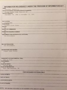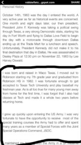 We developed a time line for Robbie from his graduation from high school until now. We used his on social media from the Internet to build the timeline and then added the information obtained under the auspices of the Freedom of Information Act from the National Personnel Records Center.