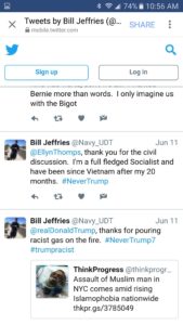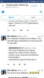 He claims to be a proud socialist and a “combat veteran for Hillary”;