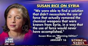 Susan Rice is a lying muslim p.o.s.! The bitch said the obozo admin. got rid of the chem weapons in syria..gee thats funny, seems the airstrike hit a warehouse full of them….lying slut!!