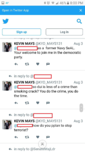 Hey, Mays, how does it feel knowing you are the proud recipient of a Star on the Google Walk of Dishonor, and that people, including your relatives, when they research your name will know you for the cowardly piece of shit you are, until the end of time. How does it feel, Pussy? Tell us of your exploits as a Navy SEAL (Note correct spelling) and your tremendous courage that saved your troops from certain slaughter. Do that for me, you piece of shit. I’m standing by for your explanation, you fucking coward.